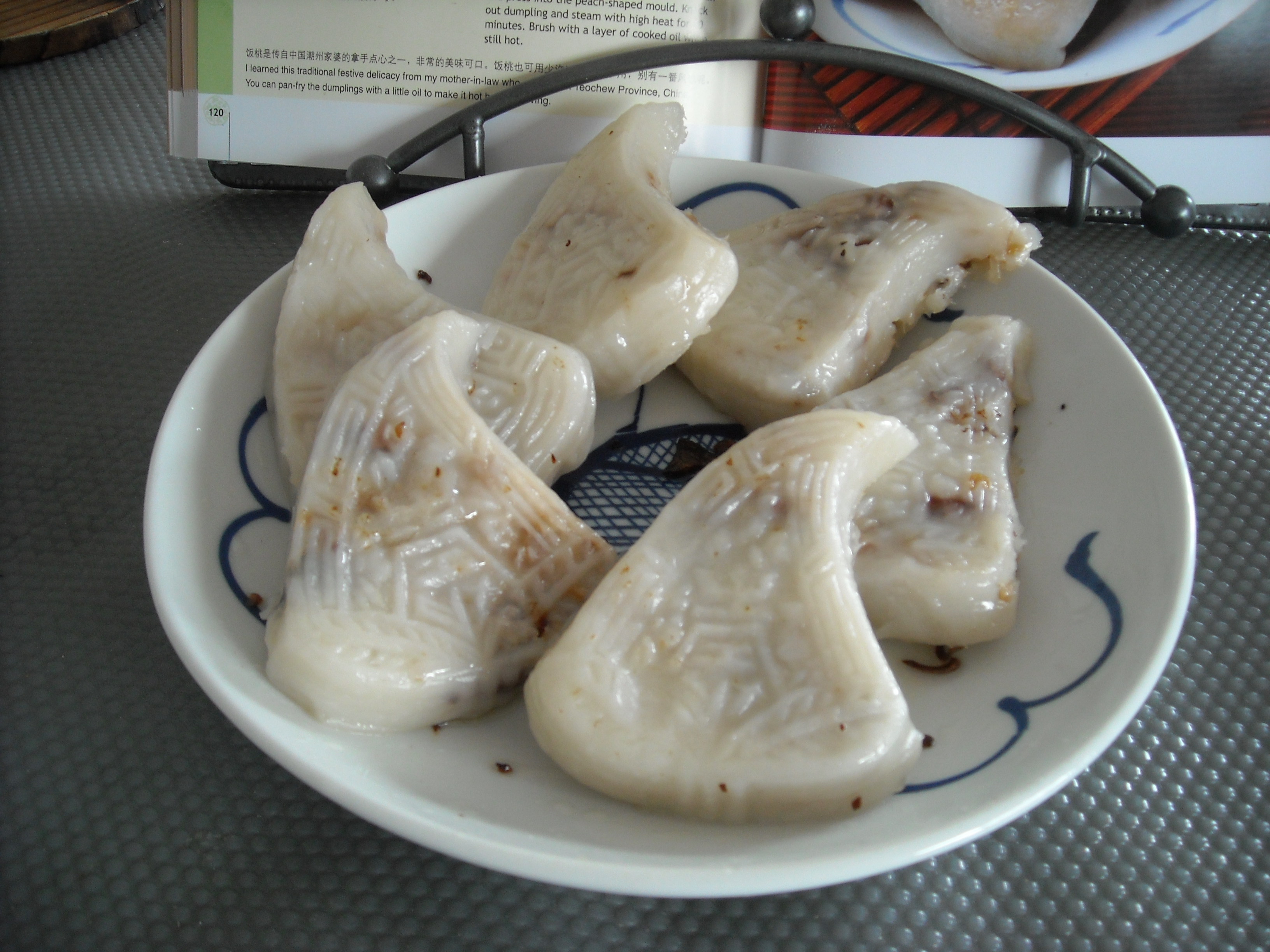 This is a delightful and delicious Chinese snack. It require a steamer and a peach shaped mould.