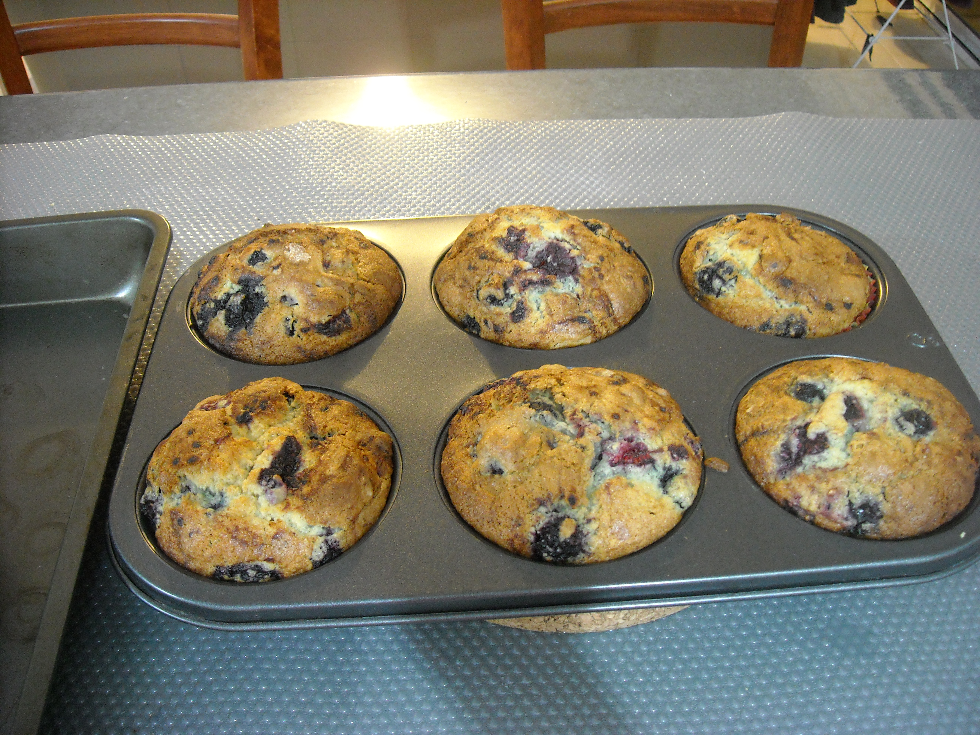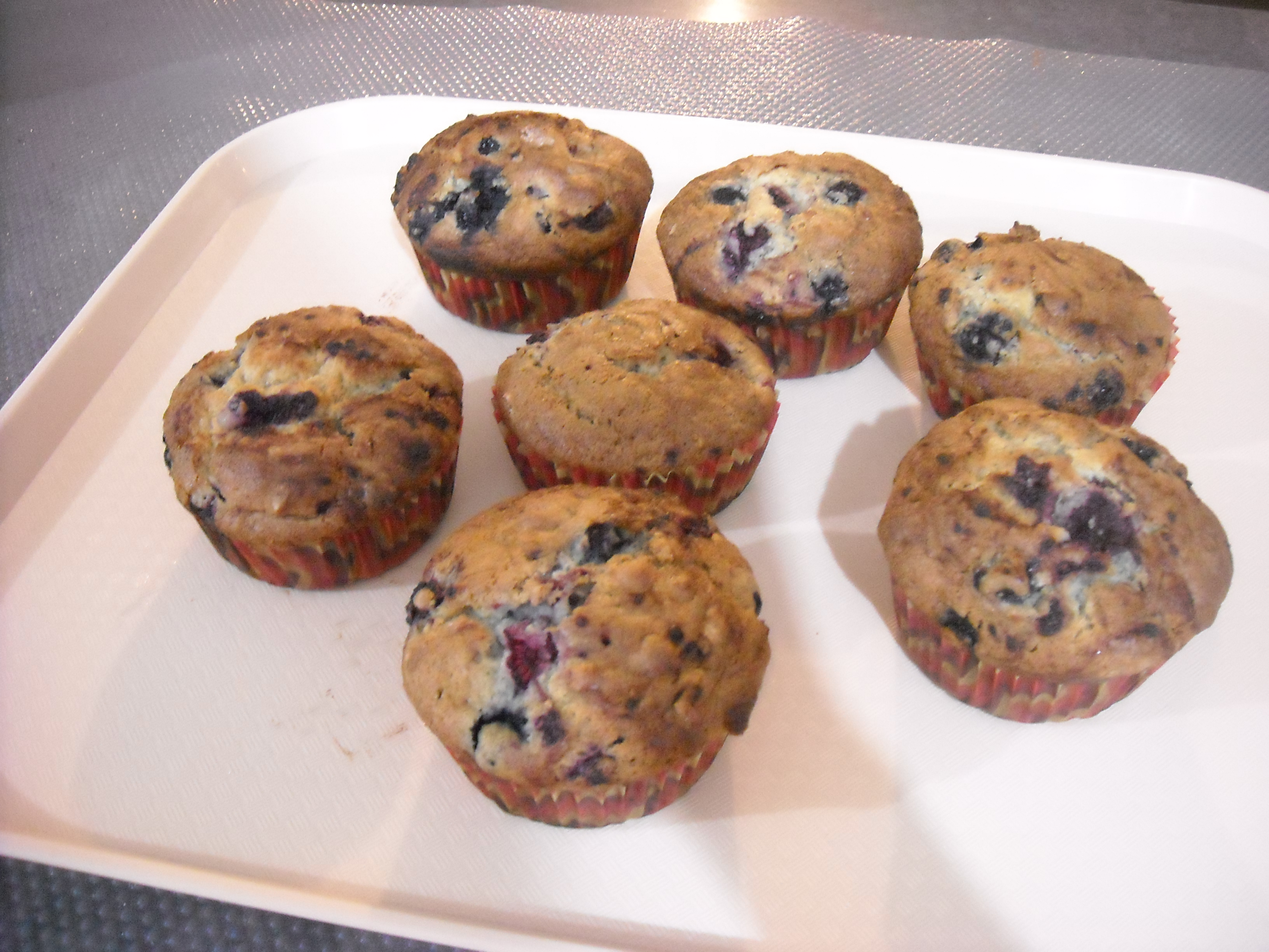 - Preheat oven to 180’C. Place the flour, baking powder and sugar in a bowl. Place the oil, egg, milk and vanilla in a separate bowl and whisk to combine. Pour the liquid ingredients into the dry ingredients and mix until just combined. Add the blueberries( or mixed berries ) and mix to combine. Spoon mixture into a 12-hole 1/2-cup capacity (125ml) muffin tin lined with paper patty cases. Sprinkle the tops with sugar and bake for 30-35 minutes or until cooked when tested with a skewer. Remove from tin and cool on a wire rack. Voila!