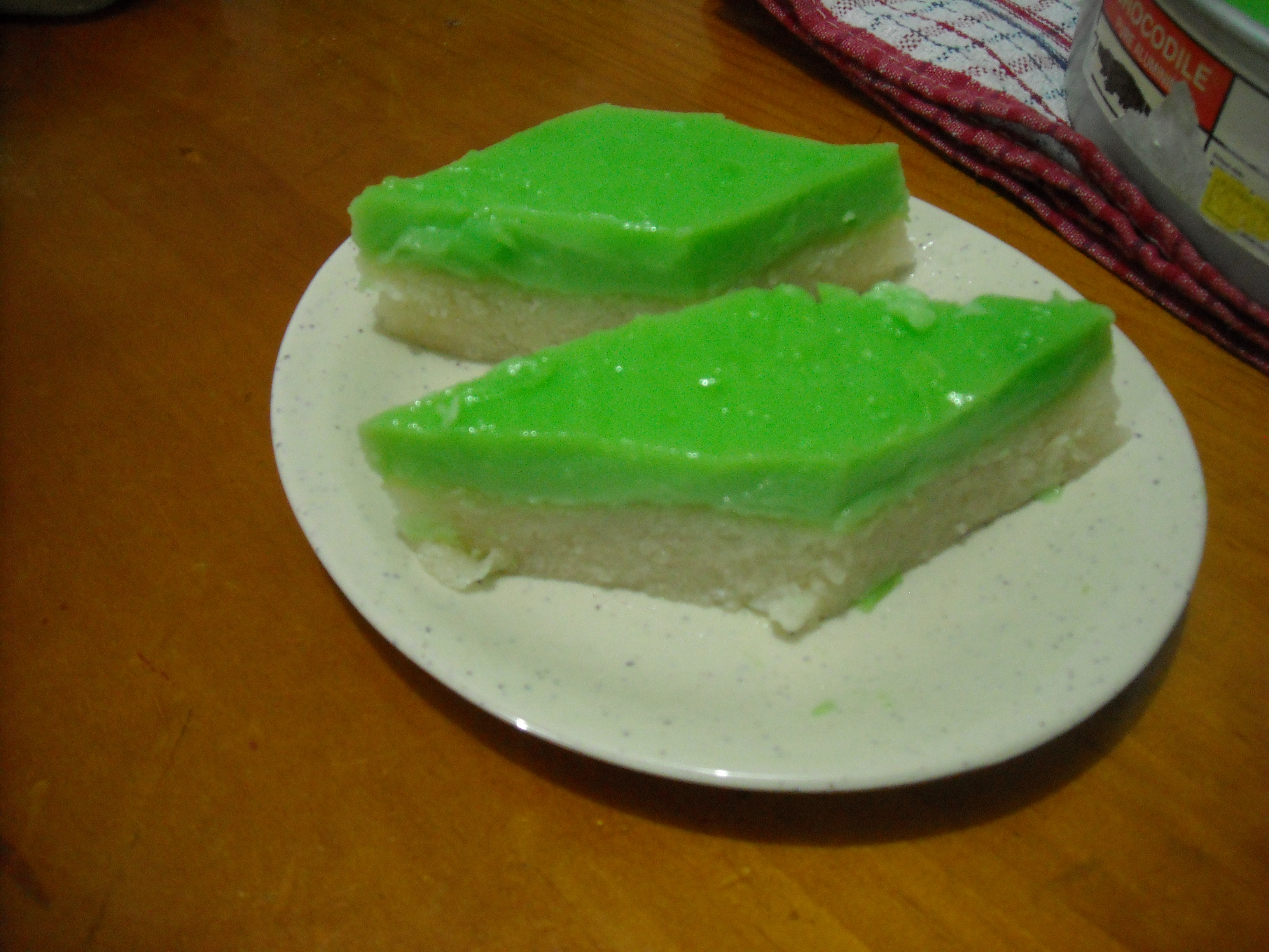 - Pour into a small saucepan and whisk on medium heat until the mixture is a very thick paste.Add in the coconut cream,stir with a wooden spoon and cook for 3-4 minutes until it thickens again. Pour over the rice and smooth over with a spatula. Steam in a wok for 20 minutes. When the kuih cools, the custard will set further. Cool completely for 3-4 hours, before running a knife around the edge of the tin and releasing the kuih. With a wet knife cut into bite sized diamonds and arrange on a plate into a concentric snowflake pattern. Voila!