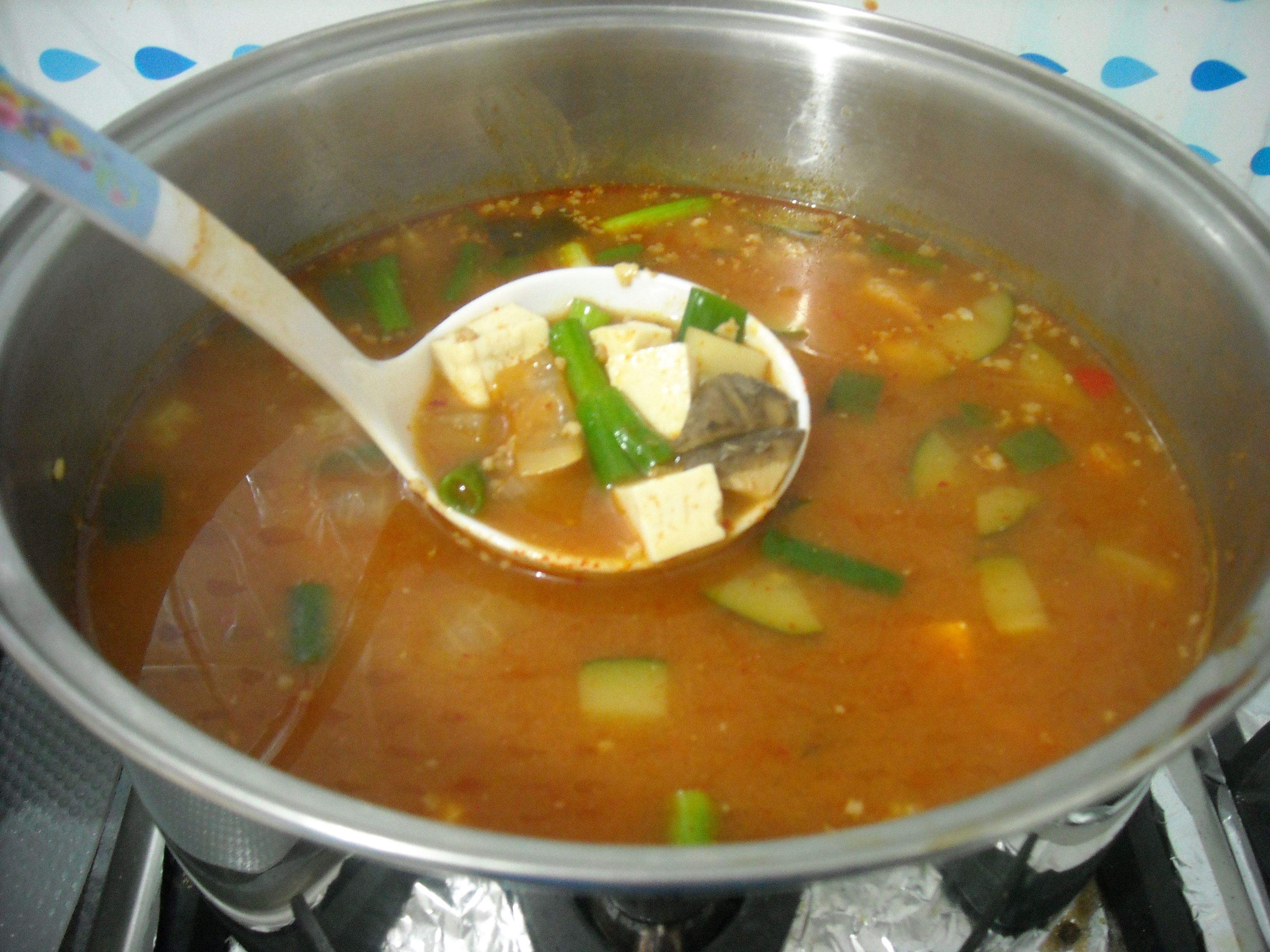 That’s the reason why I insist on Korean food today. I got this recipe from Ommas Kitchen as the recipe for this soup is fairly simple yet delicious as my family member had many helpings. I also added more vegetables into it.