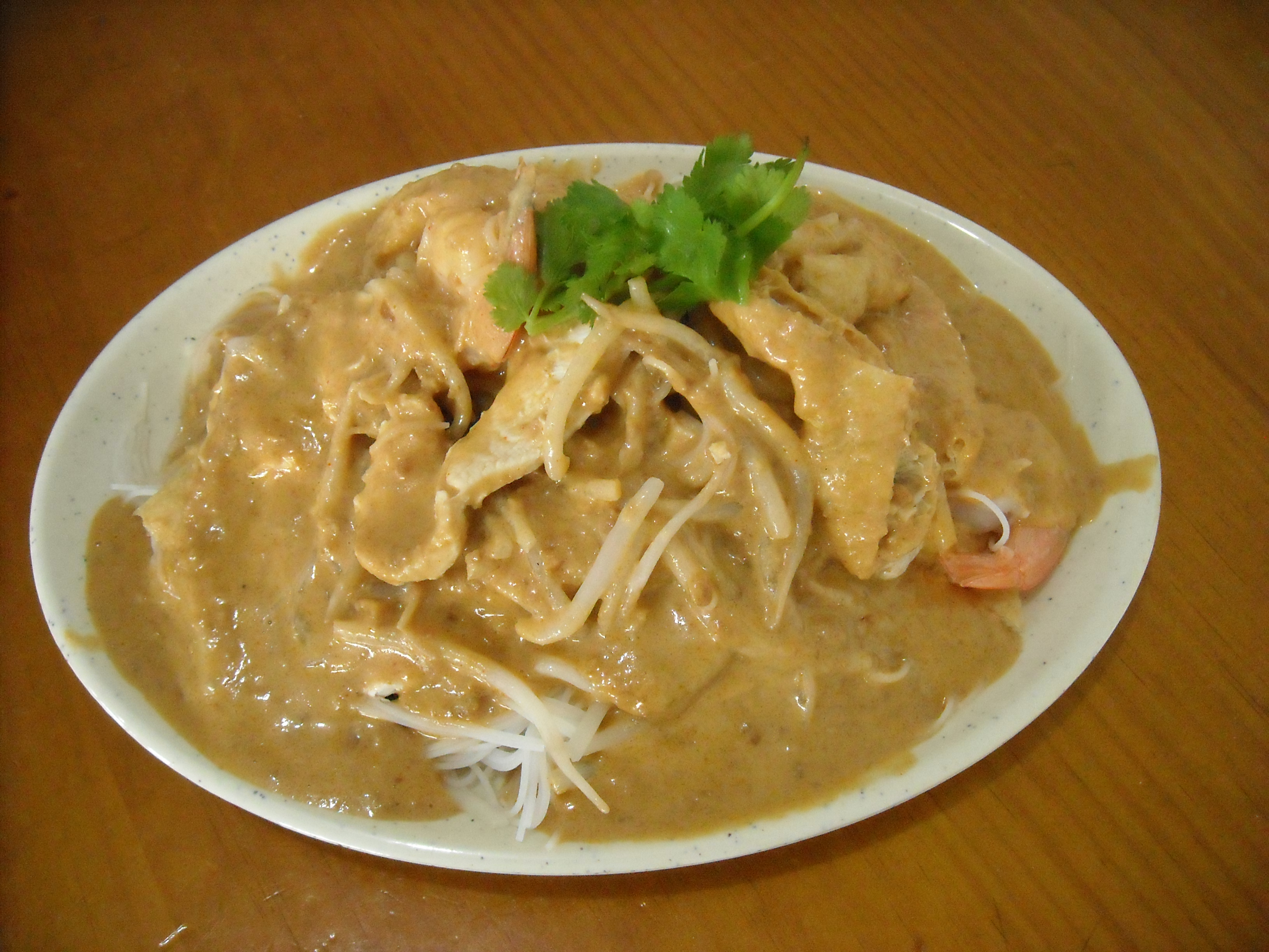 Satay Beehoon will always be a part of our life beginning from our childhood days. I would say one of my family’s all time favorites. I have searched for a recipe as close as my hometown’s and settled for this one from the site, Asian Food recipes. Kang Kung veggies was not in season so I omitted it. I used bean sprouts, prawns, chicken and bean curd puffs. I also omitted cockles as the actual ones are not available where I currently lives. It is these cockles that makes this dish very distinctive and special. N0 matter how good the satay sauce can turn out to be, there can be a difference in overall taste if without the cockles.