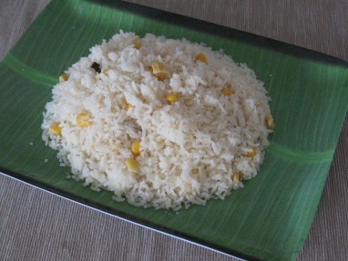 - Once the rice is about 70%, sprinkle the sweet corns to the rice and mix gently and cover the pot again.