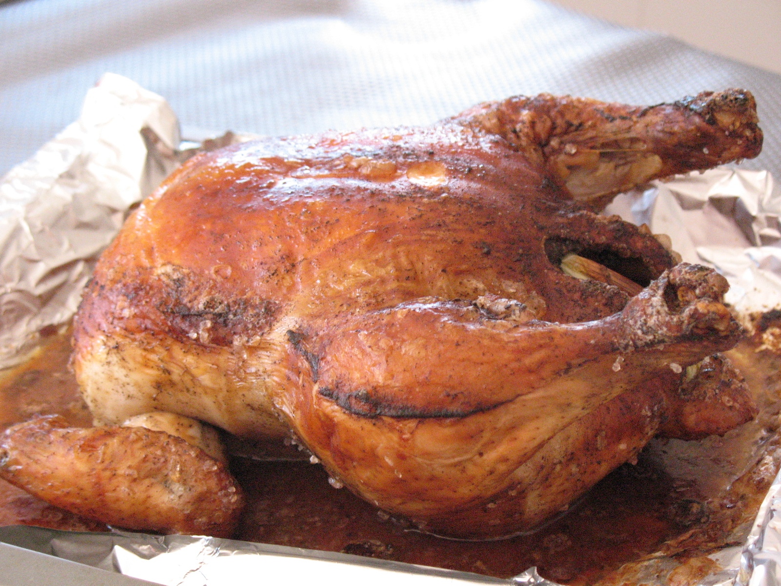 I baked this Chinese style roast chicken marinated with garlic mixture seasonings. This recipe is simple but requires quite a bit of time. Patience is rewarding.