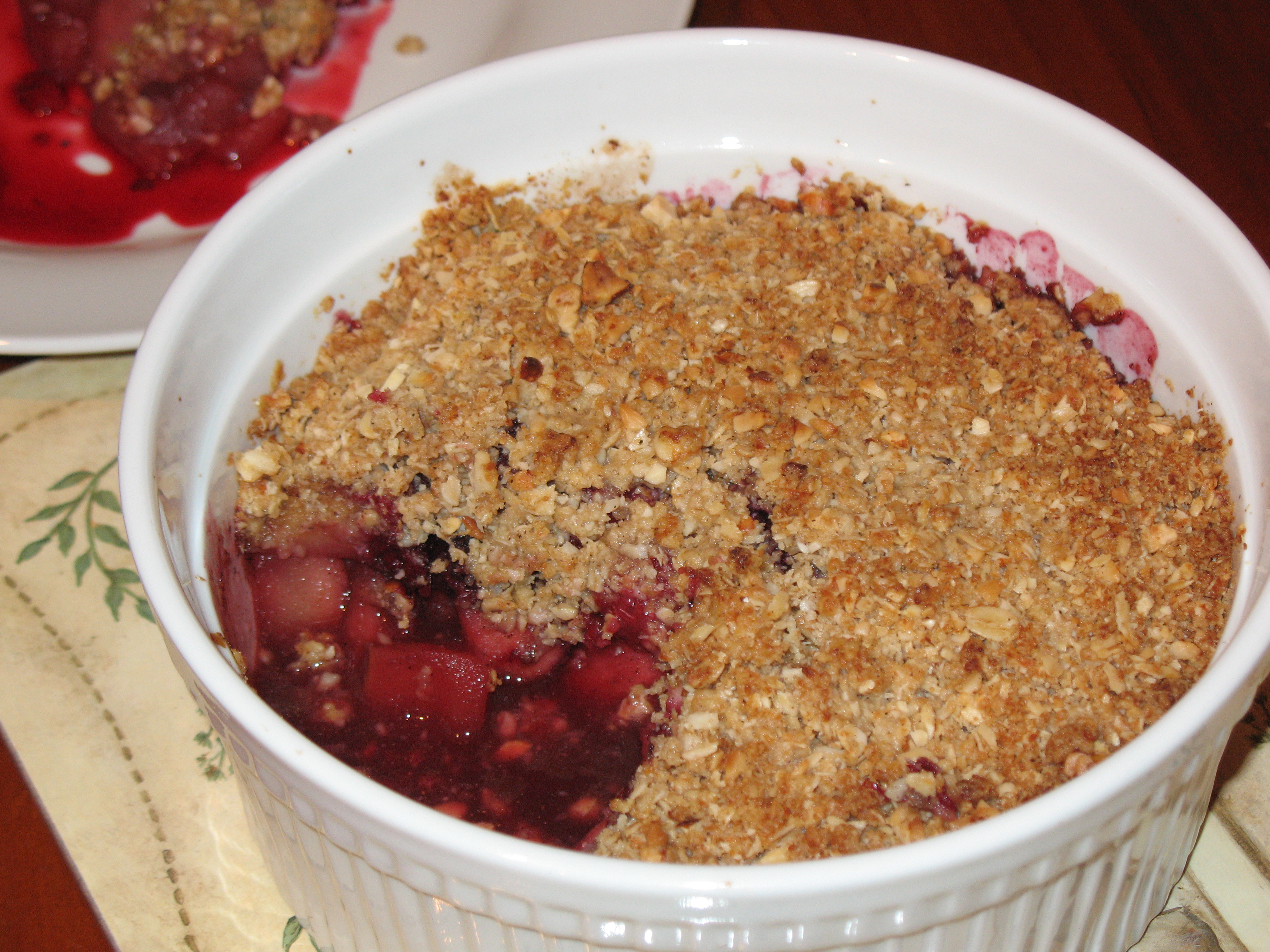 3 Mix ingredients B till crumbly and sprinkle on top of the apple berries mixture. Bake in a preheated oven at 180’C for 25-30 minutes till golden brown.