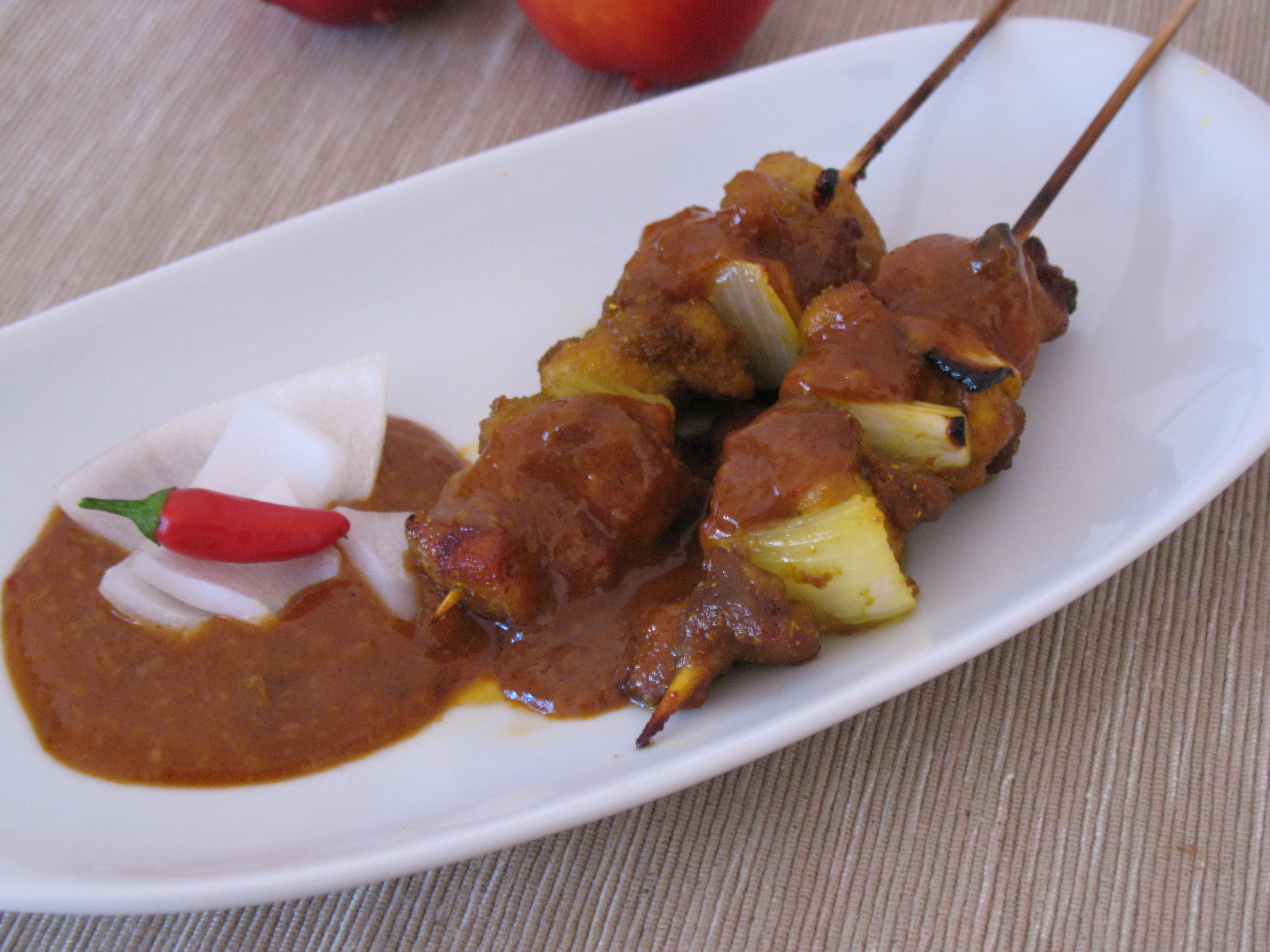 - Mix in the chicken with the marinade for an hour or more. Thread marinated chicken onto the skewers. Add in some onion in between the meat if you wish. Grill them till cooked through. Serve with the satay sauce, accompanied with onions, cucumbers and rice cakes(optional). Voila!
