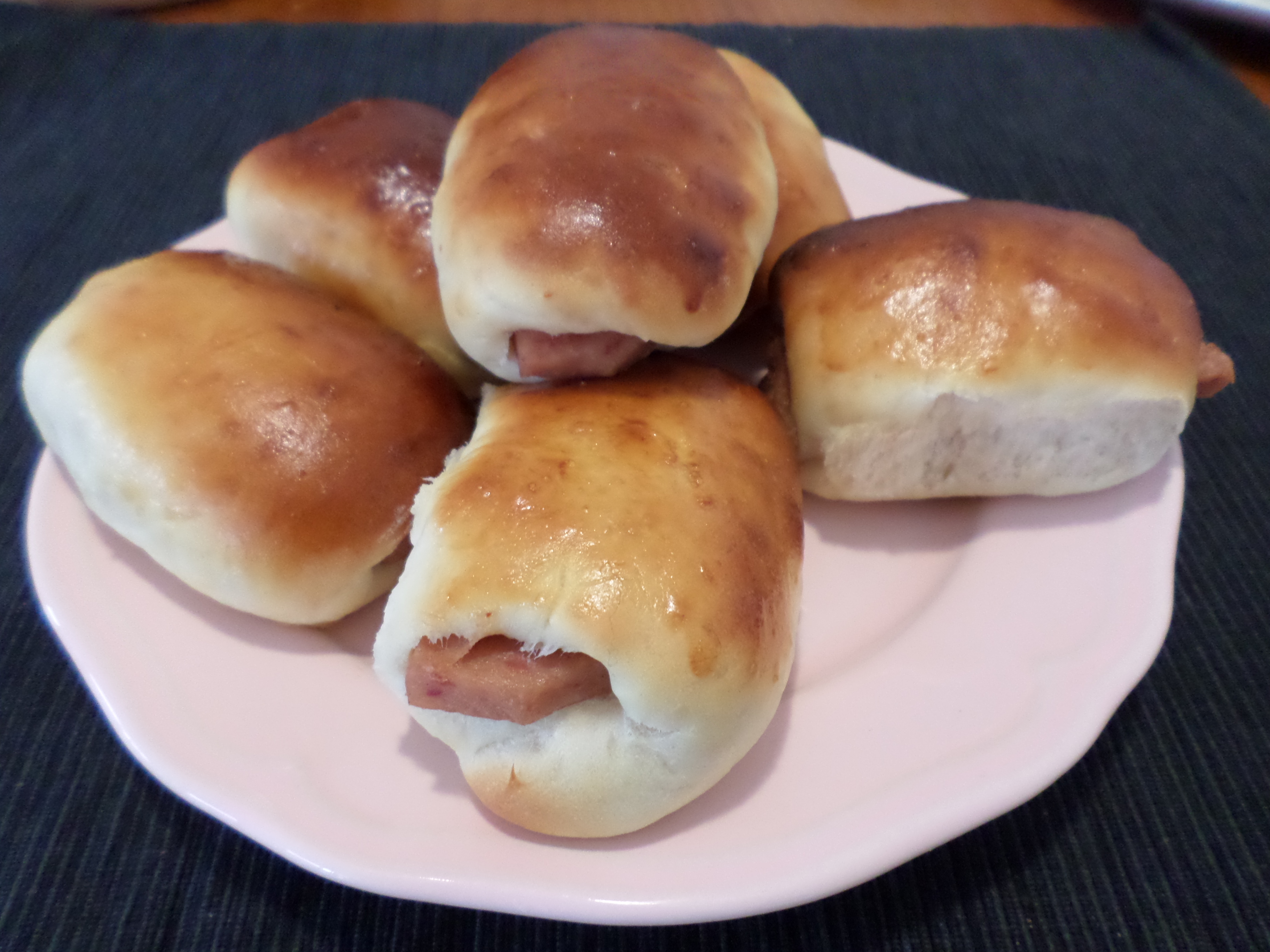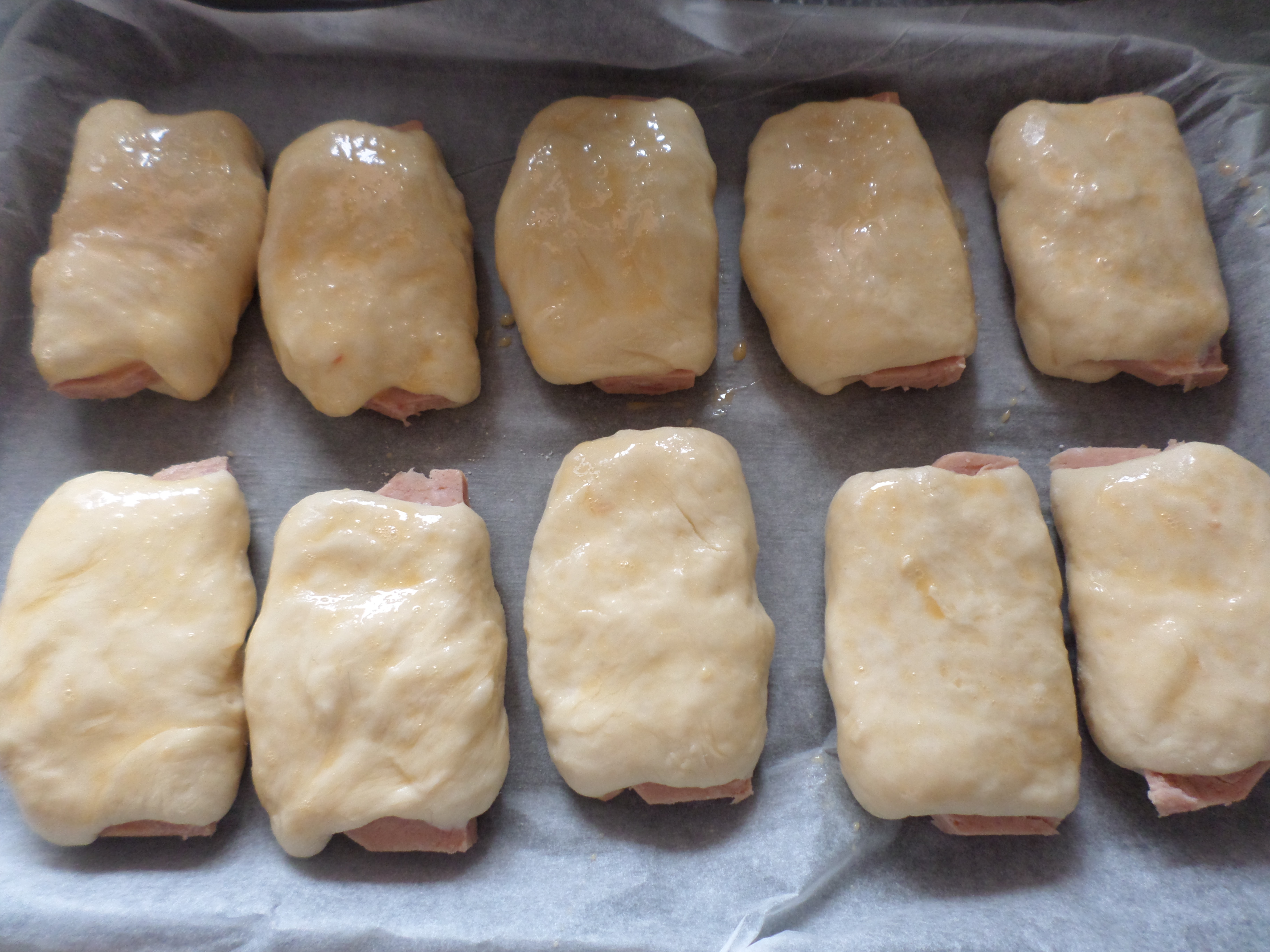 - Flatten each ball into your desired shape for the fillings you chose. I use luncheon meat in this recipe. Shape the ball into rectangle shape and lay the luncheon meat piece in the centre and seal both sides in wrapping form.