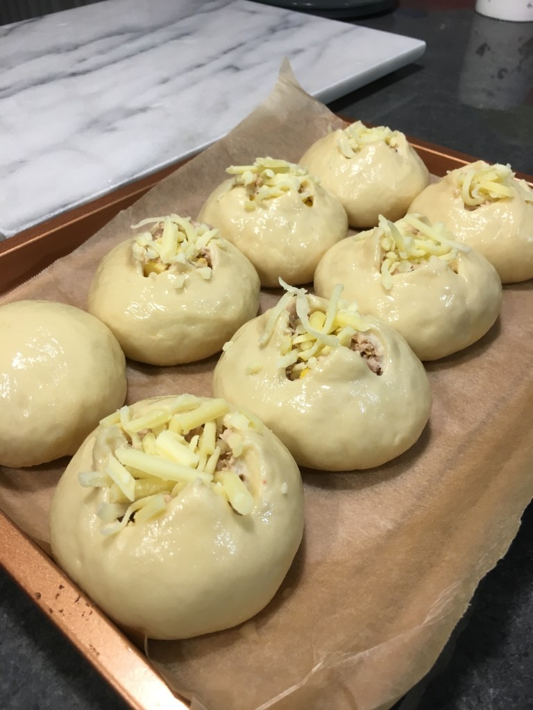 Baked this sweet dough bread buns filled with tuna and topped with mozzarella cheese. This recipe has the standard way of making bread having twice proofing times.