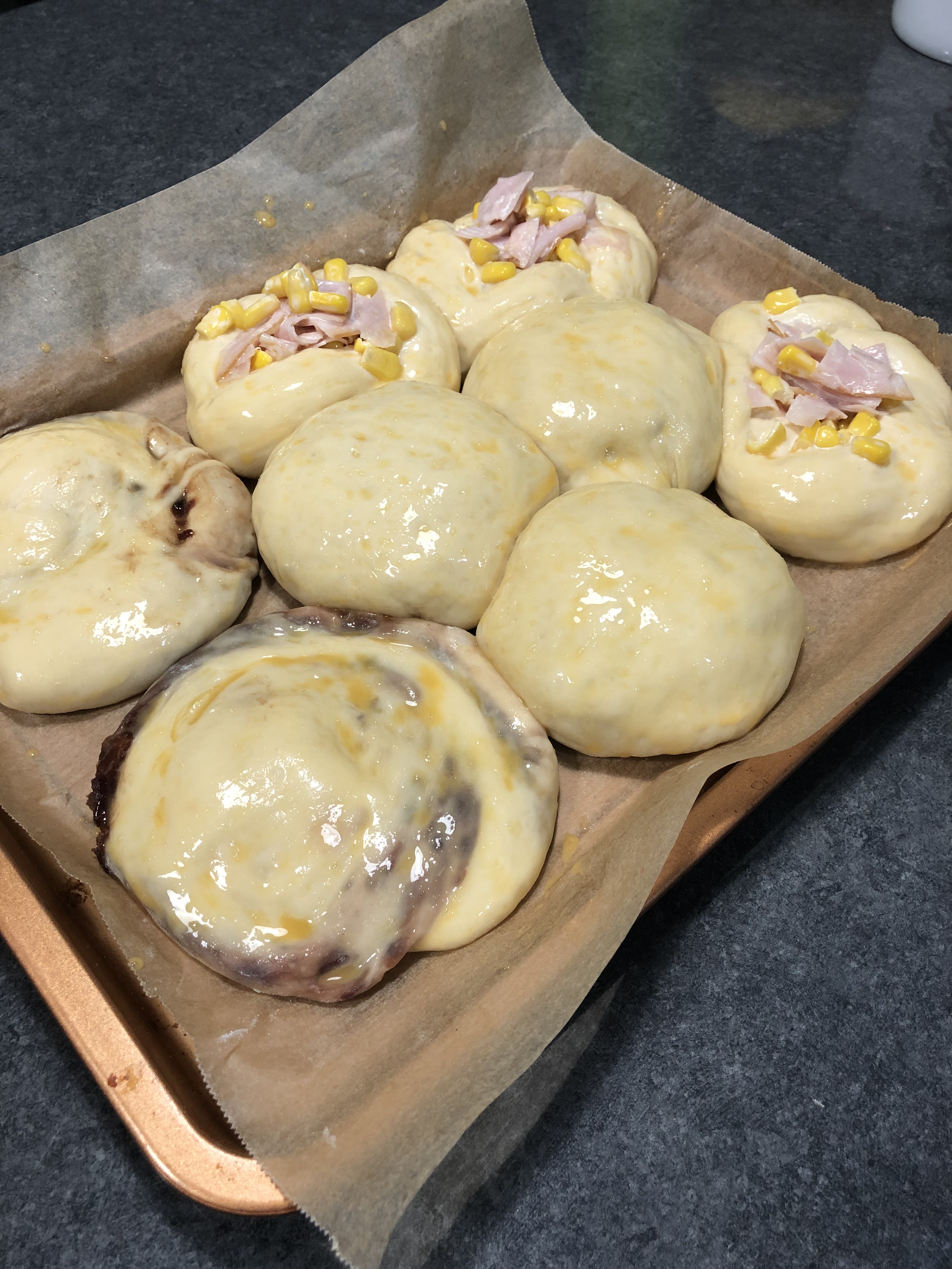 This is one of my favourite bread rolls. I made these rolls filled with red bean paste, curry potatoes, corns with ham, whatever I can find sitting in my fridge. I would bake these very often and they would last for a couple of days. Good for brekky and afternoon tea!