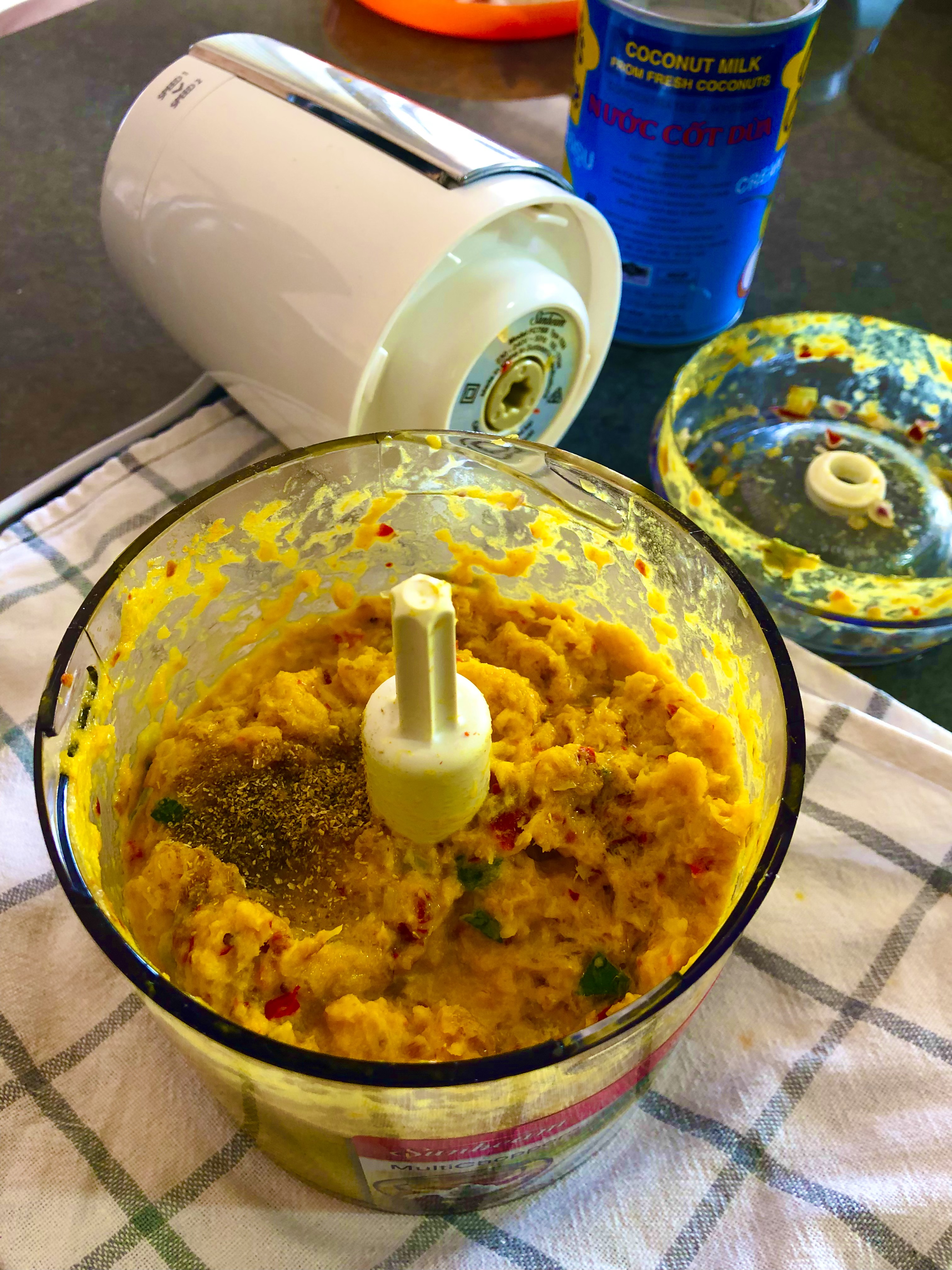 I just bought some cod fillets, any white fish can do and decided to prepare this Otak Otak. I blended all the ingredients and fish into paste like.