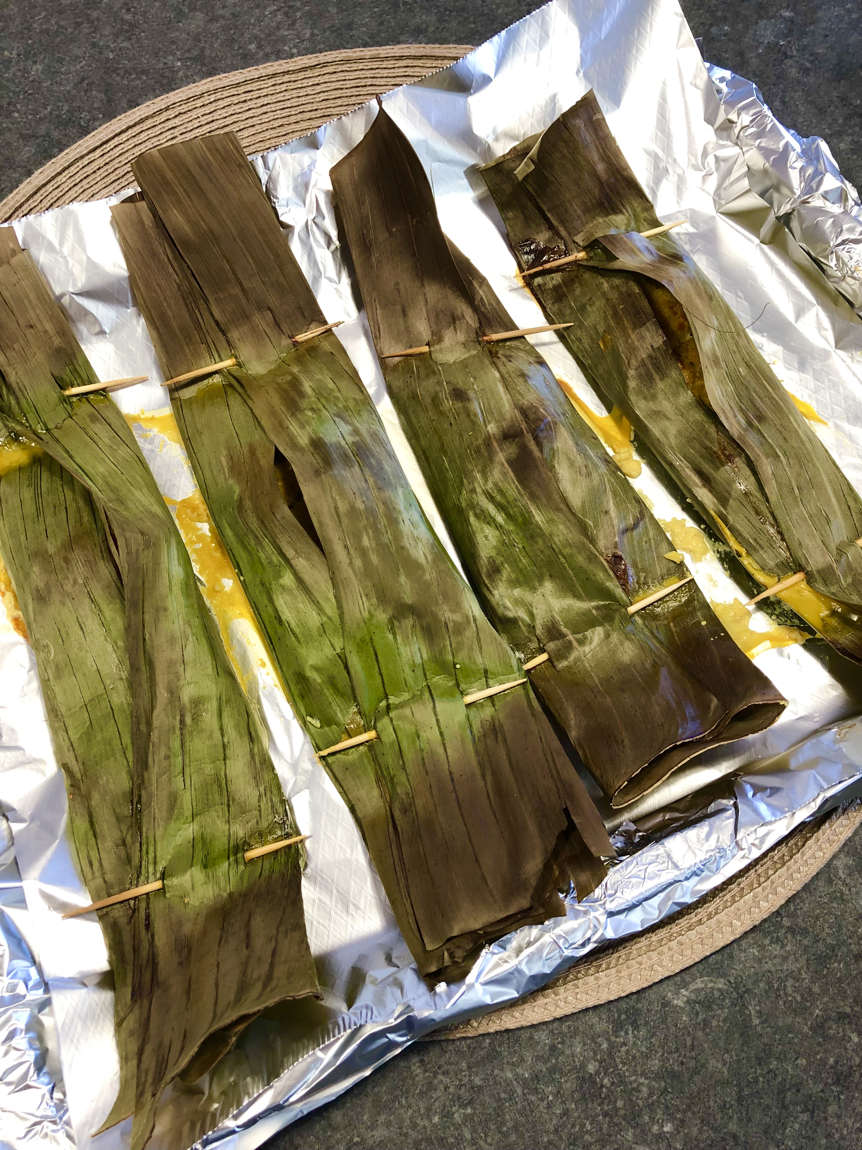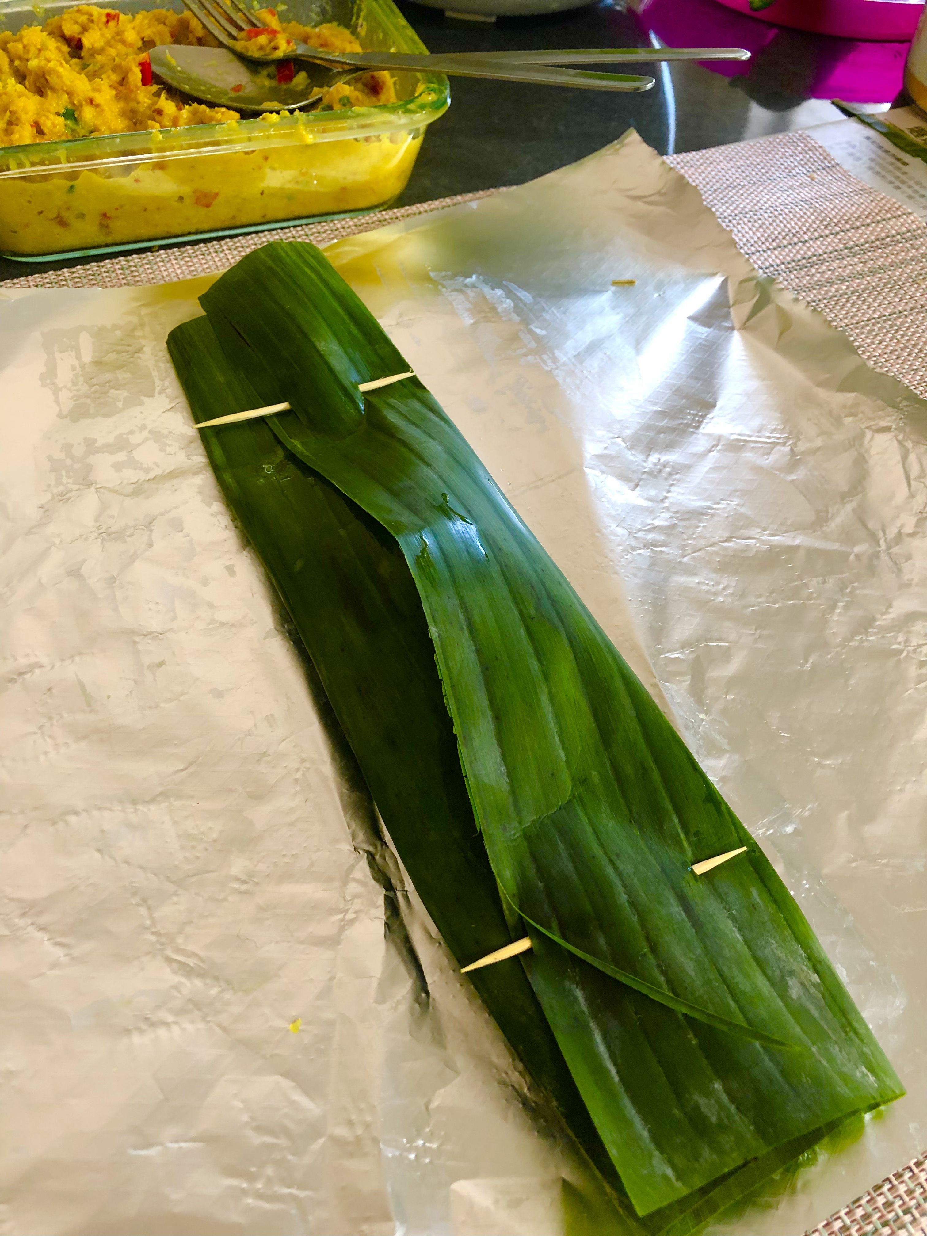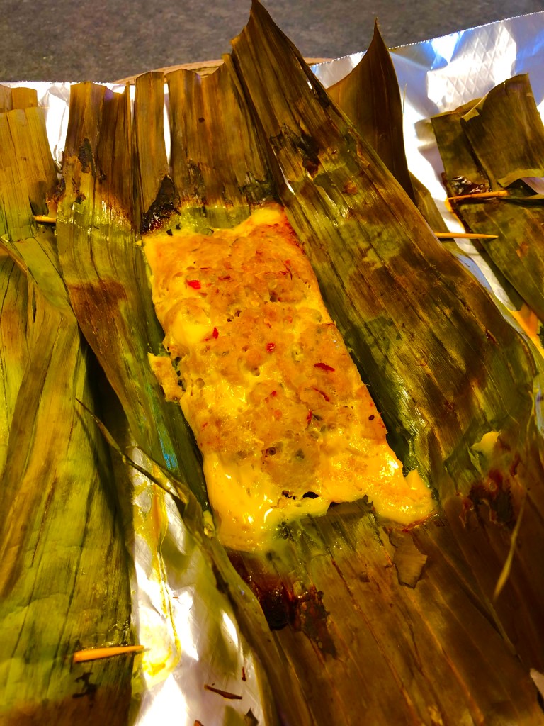 One of my favourite food is this grilled ground spiced fish wrapped in banana leaves.